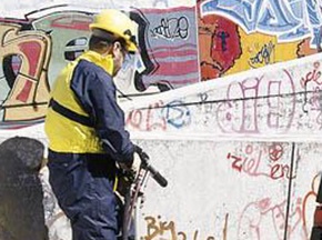當(dāng)今社會(huì)小廣告已從單一的貼紙發(fā)展到噴涂,而且常常噴涂在不易清理的地方,如盲道、曲面以及其它凹凸不平的地方。采用DU 240/15GM高壓清洗機(jī)加濕噴砂作業(yè),人工手持噴槍,可非?焖俦憬莸厍謇砀黝惤ㄖ锉砻娴男V告、污物等。[查看詳情]